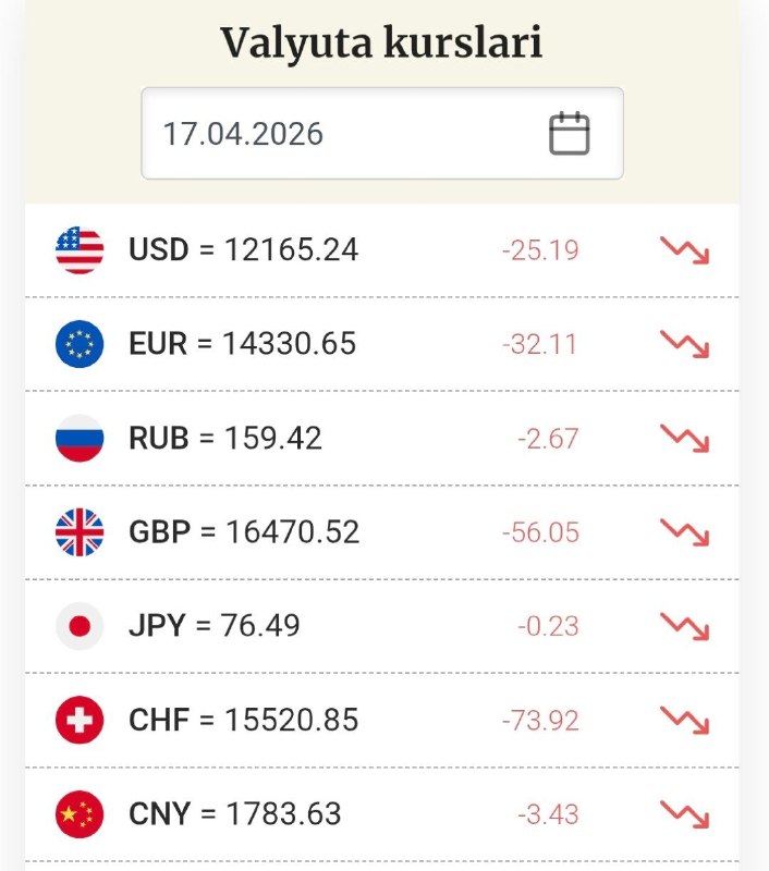 Доллар тушди 17 апрель учун долларнинг расмий курси 12 165,24 сўм (-25,19 сўм) ҳисобланади @bankir Post menyusi Микроқарзлар фоизи пасайди Ipak Yuli Bank ЕТТБнинг TFP дастурида тасдиқловчи банк мақомини олди