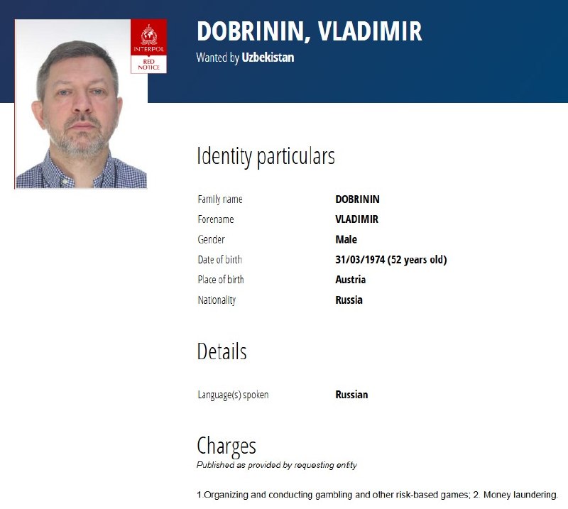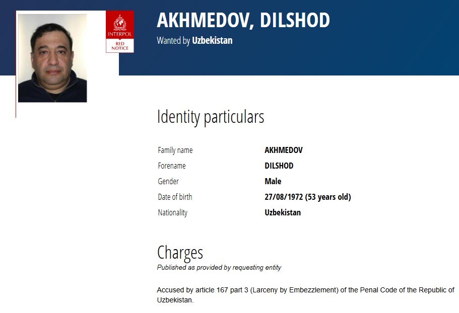 Ўзбекистон “Ўзметкомбинат” собиқ бошқарув раиси Дилшод Аҳмедовни ҳамда “Humans“ асосчиси ва раҳбари Владимир Добрининни халқаро қидирувга берди.