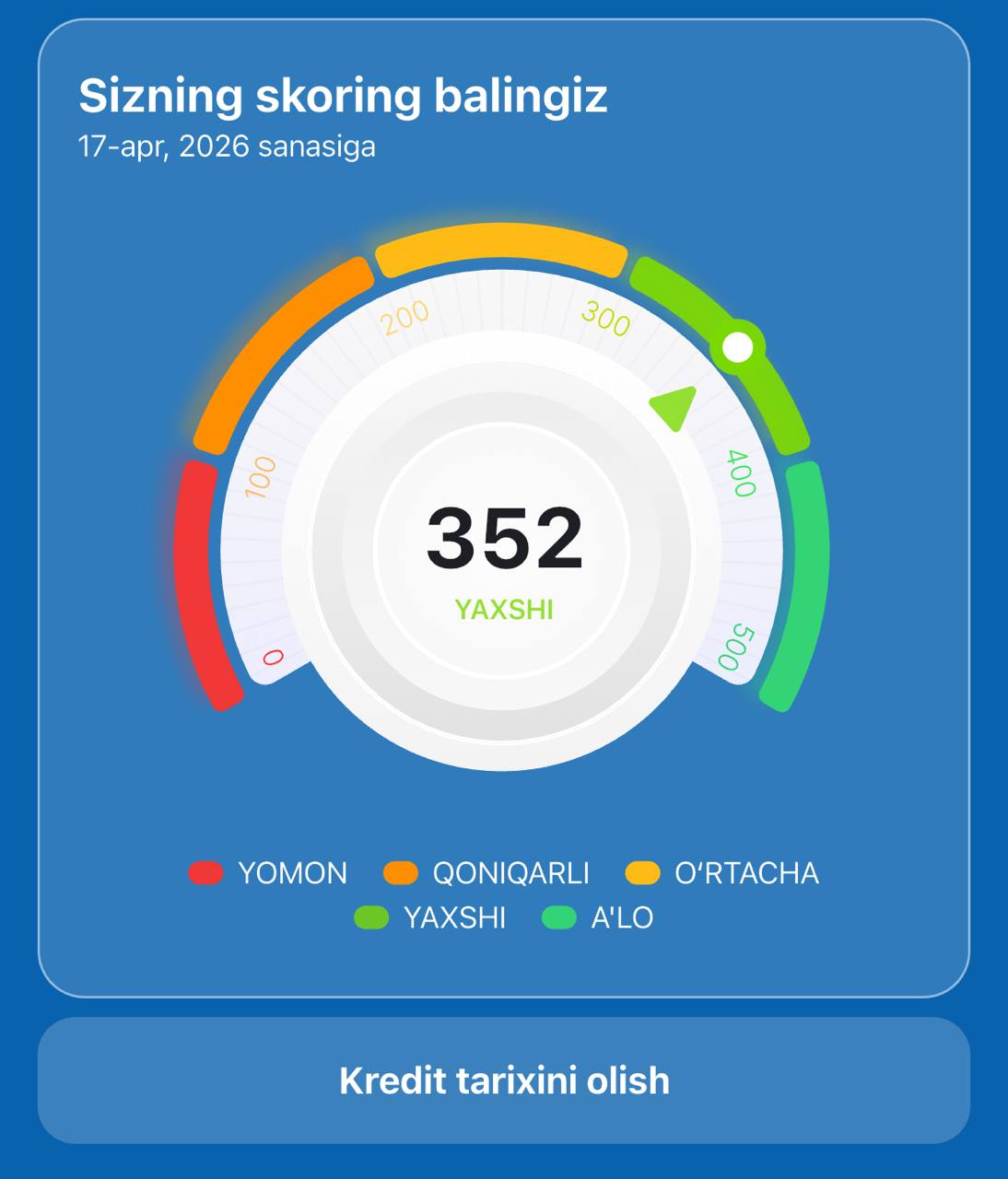 ➡️Скоринг баллингизни КАТМ иловаси орқали ҳар куни бепул кузатиб борсангиз бўлади.