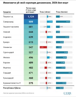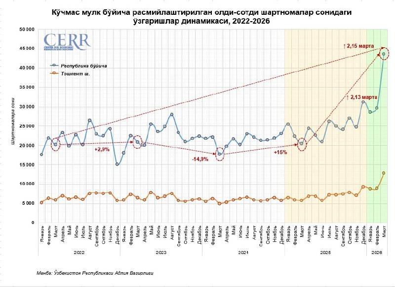 Ўзбекистонда нақдсиз ҳисоб-китобларга ўтиш олдидан март ойида 43,6 мингта уй сотуви расмийлаштирилди.